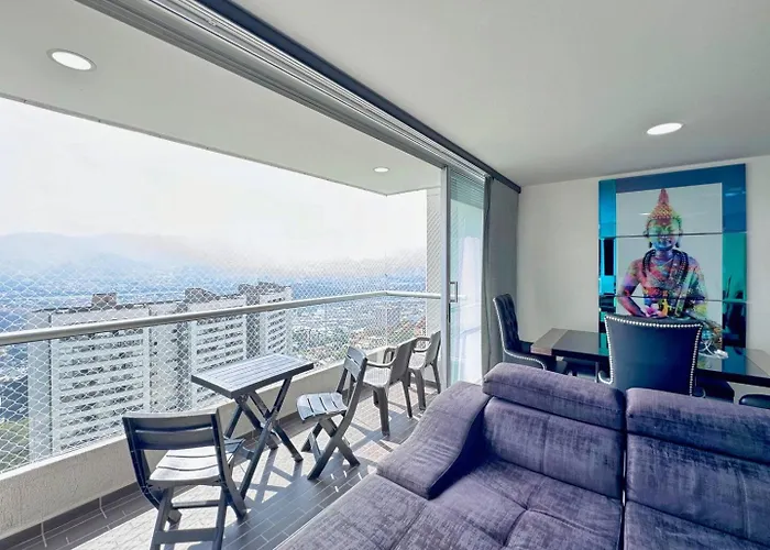 The spacious 87 m² 3Br Panoramic Near Country Club El Poblado Apartment Medellin includes a terrace and is located approximately a 10-minute ride from the city parks and gardens. The 2-bedroom apartment features Wi-Fi, along with complimentary private parking for guests travelling by car.